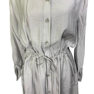 CHICO'S Light Gray Long Sleeve Blouson Shirt Dress