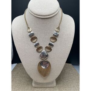 CHICO'S Link Pendant Necklace Two Tone Textured Hammered Links Leaf Petal 16”