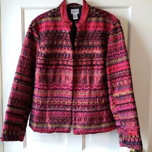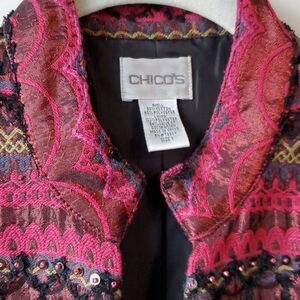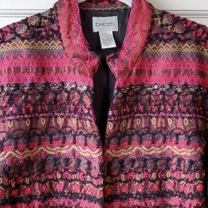 CHICO'S MANDARIN COLLAR EMBROIDERED BEADED EMBROIDERED JACKET BOHO ARTSY 8 MED