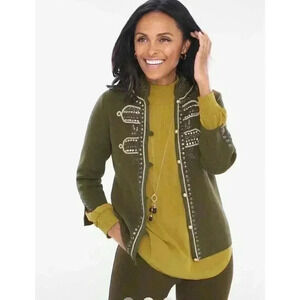 CHICO’S MILITARY STYLE EMBELLISHED CARDIGAN SIZE 2