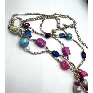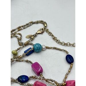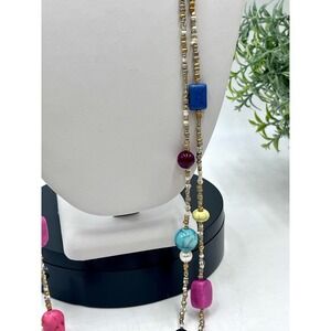 CHICO'S Multi Color and Shapes Beaded Double Strand Matte Gold Tone Necklace