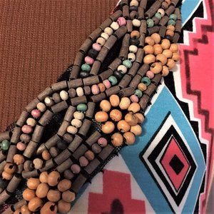 Take it all in, with easy to pull-on style. This detail-reveling maxi dress pairs bold indigenous patterns with an irreverent array of colors. An exquisite beaded V-neckline is the perfect just-because.