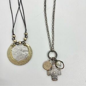 CHICOS NECKLACE BUNDLE 1 regular 16” hammered metal necklace and 1 long chain