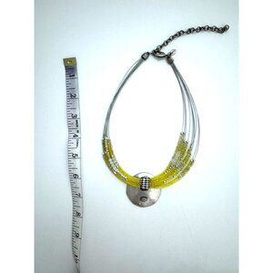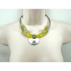 CHICO'S NECKLACE Jewelry Statement Yellow White Beaded Silver Hammered Choker