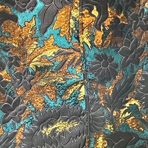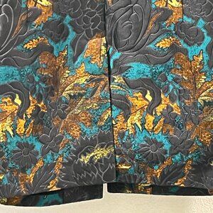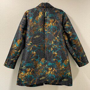 * Long sleeve blazer, woven floral brocade/tapestry in black, turquoise, rust multi