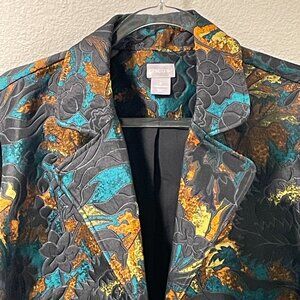 CHICO'S (NEW) Tapestry/Brocade Floral Long Line Blazer, Blk/Turq/Rust - 4/20-22