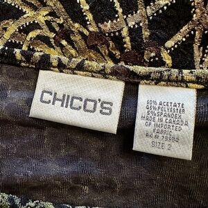 CHICO’S, NWOT, WOMENS, BLACK WITH GREEN & GOLD COLORS, LONG SLEEVE TOP. SIZE 2