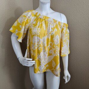 CHICO'S NWT Linen Paisley Off Shoulder Short Sleeve Knit Yellow Top~Size S