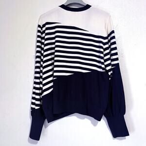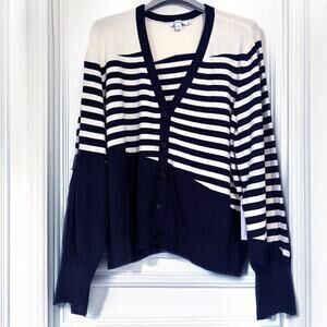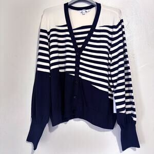CHICO'S NWT Mixed Stripe Balloon Sleeves Knit Cardigan Sweater Size 3/XL