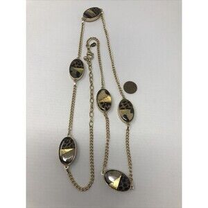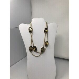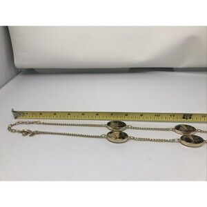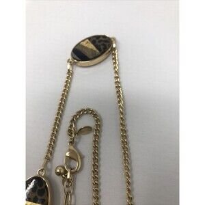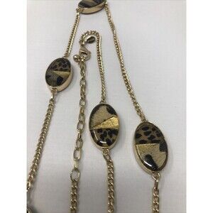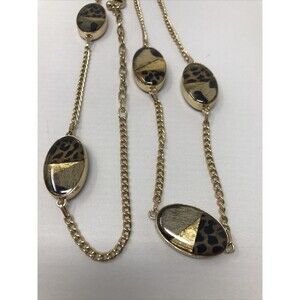 CHICO'S Necklace Animal Print Faux Fur Oval Beads Gold Tone Brown LONG Strand