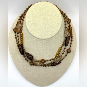 CHICO'S Necklace Multi Strand Layer Gold Tone Brown Clear Metallic Sand Beads