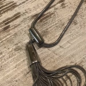 CHICOS Necklace Silver Tassel Adjustable Toggle 23”