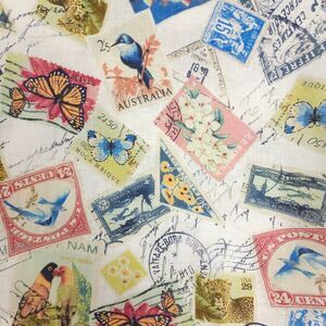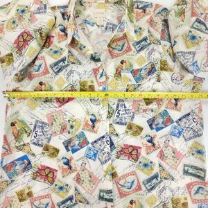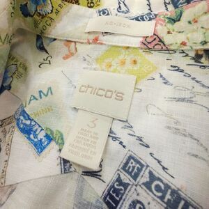 CHICOS No Iron Linen Stamps Shirt Button Up Blouse Resort Coastal Novelty Print
