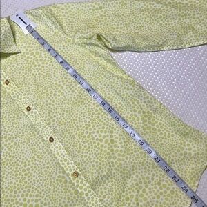 Lovely shirt in Apple green and white. Gold tone buttons. Chico’s size 0 is equivalent to S/4. Excellent condition.