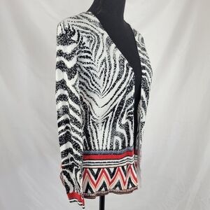 CHICOS Open Front Cardigan Tribal Animal Print Linen Cotton Blend