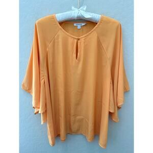 CHICO’S | Orange Flutter Sleeve Blouse Flowy Keyhole Neck!
