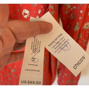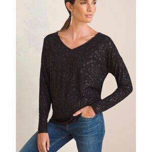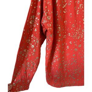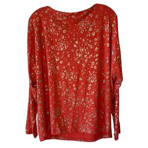 CHICO'S Orange + Gold Touch of Cool Foiled Animal Print Knit Tee NWOT Size Large