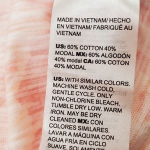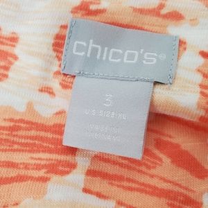 CHICO'S Orange White Print High Low Hem Tunic Tee 3/4 Sleeve V Neck Sz 3 XL