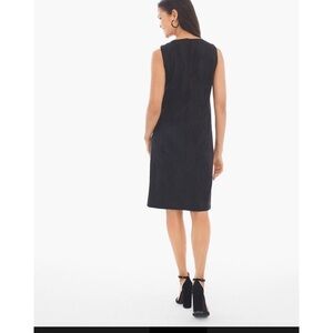 An absolute knockout (if we may be so bold.) Neutral colorblocking creates an edgy impression in this ultramodern sheath dress. Faux leather suede