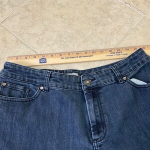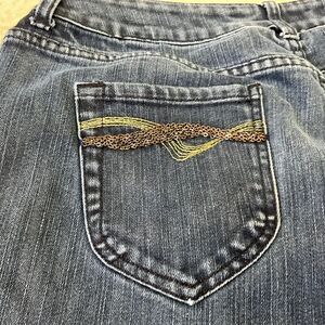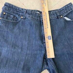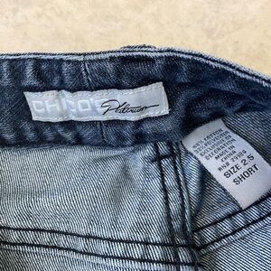 CHICO'S PLATINUM DENIM 2.5 SHORT (L-14) Blue med. wash Jeans Pants embellished Back pockets.