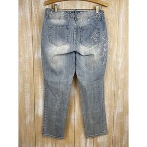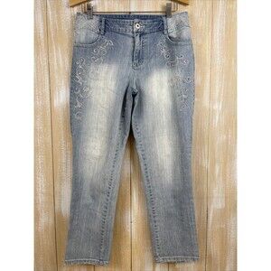 CHICO'S PLATINUM JEANS Size 1 Light Blue Embroidered Cropped Denim Pants