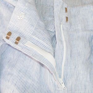 CHICOS Pants, 0.5/6R, Linen, Paper Bag Waist, Blue/White, Stripes, Sash belt