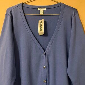 CHICO'S Parisa Cardigan 3/4 Tee Bluejay Women’s NWT Size3