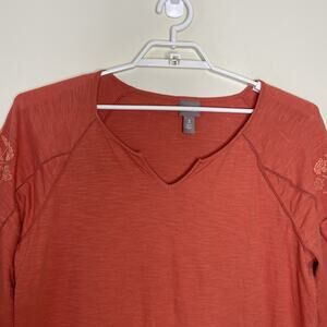 CHICO'S Peasant Blouse Orange Cotton Embroidered Puff Sleeve Boho Eyelet Sz 3/XL