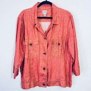 CHICOS Pink Gold Linen Jacket Size 3/ XL