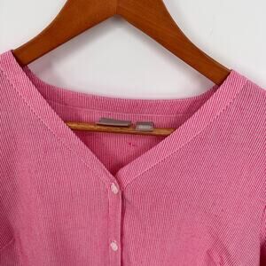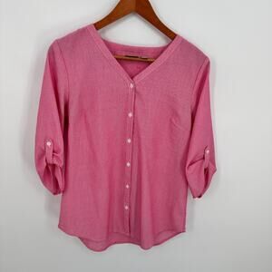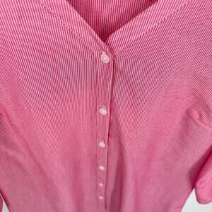 CHICOS Pink Stripe V-Neck Button Down Shirt // S