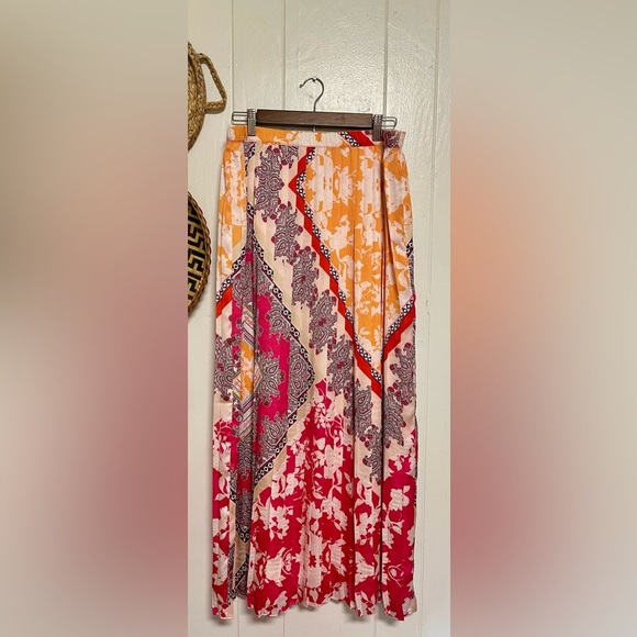 CHICOS Pleated Maxi Skirt Pink Floral Paisley Size 1 (8-10) Medium
