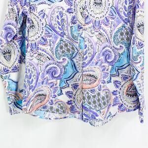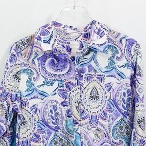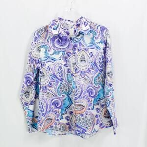 CHICO'S Purple Cotton Paisley Floral Button Down Blouse