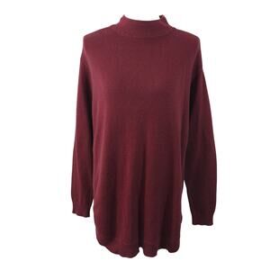 CHICO'S! RICH BURGUNDY RED COTTON BLEND MOCK NECK TUNIC LENGTH SWEATER! SZ M