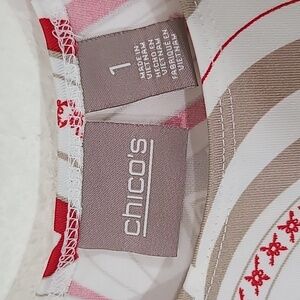 CHICO'S Red/White/Taupe Geometric Patterned Sleeveless Top, size 1 (Small)