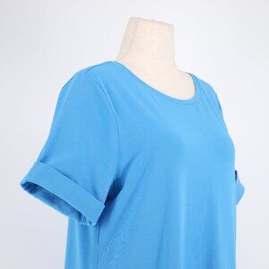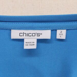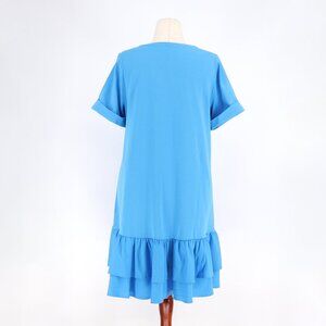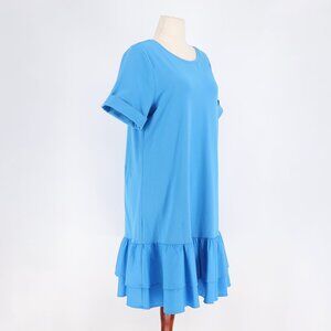 CHICO'S Ruffle Flouce Hem Cotton Shirt Dress Short Sleeve Blue Size 2 (US L)