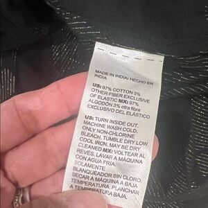 This elegant black and gold top by Chicos features a sophisticated design. The intricate pattern adds a touch of luxury to your wardrobe.