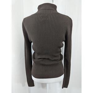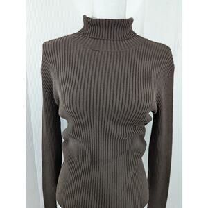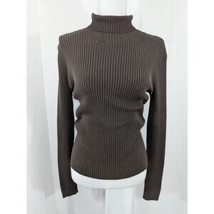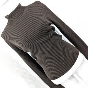 CHICO'S! SILK & COTTON! CHOCOLATE BROWN RIBBED TURTLENECK SWEATER! SZ S