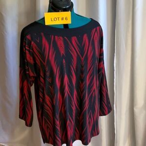 CHICOS SIZE 2 tunic style top in red & black with 3/4 length sleeves