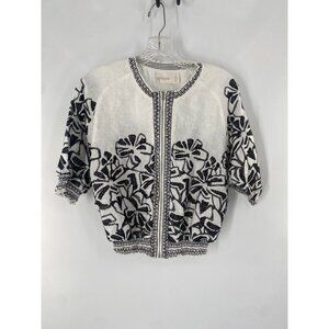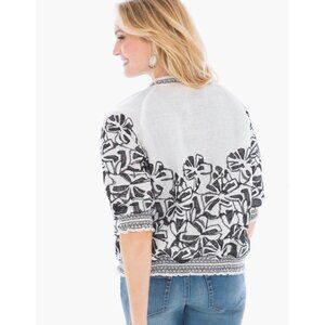 CHICO'S SMOCKED ZIP JACKET LINEN EMBROIDERED SIZE 1 PETITE