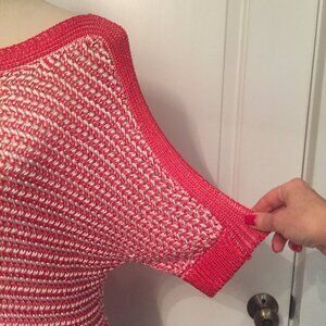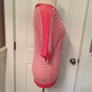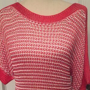 CHICO’S SWEATER KNIT TOP RED WHITE BOAT NECK Size 2 L