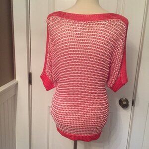 CHICO’S WOMEN’S SWEATER KNIT TOP RED WHITE BOAT NECK SIZE 2 L