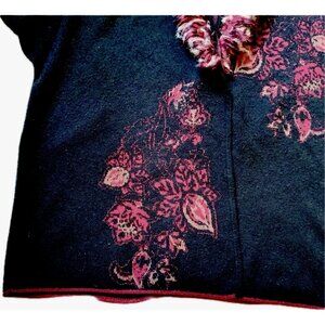 CHICO'S Sequin Beaded Cardigan Sweater Sz 3 (XL) Black/Red 3/4 Sleeve Faux Fur