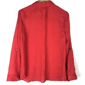 CHICOS Sheer Red Top Button Up Long Sleeve Crinkle Lightweight Size 2 Large