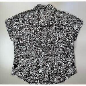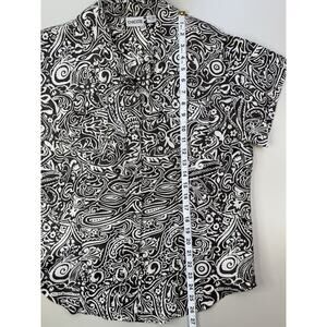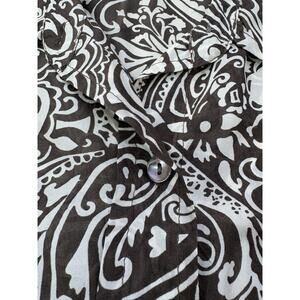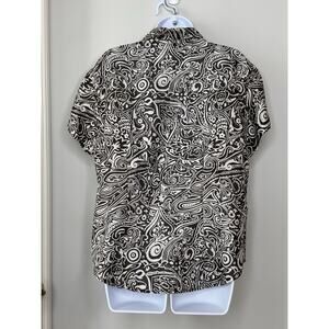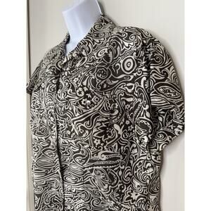 CHICOS Shirt Womens Silk Button Up Top Size 2 Large Brown Cream Resort Tribal