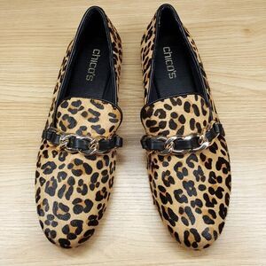 CHICOS Shoes Womens Size 8.5 Leopard Calf Hair Leather Chain Link Flat Loafer
