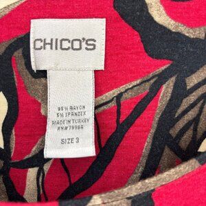 CHICO'S Short Sleeve Top Womens XL (3) Red Black Cream Floral