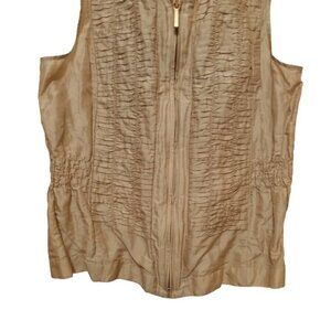 CHICO'S Silk Blend Metallic Shirred Vest in Stardust Gold Sz 0