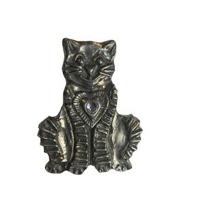 CHICOS Silver Tone Kitty Cat Pin Broach With Clear Round Rhinestone. Silver is not a shiny silver but more muted with a slight antiqued look.