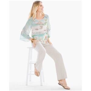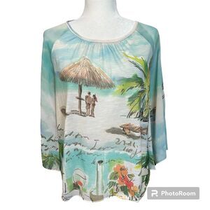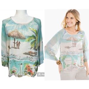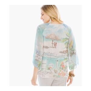 CHICO'S Size 0 Small Seaside Sangria Kimono Sleeve Tropical Watercolor Blouse
