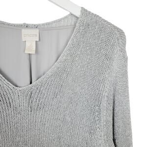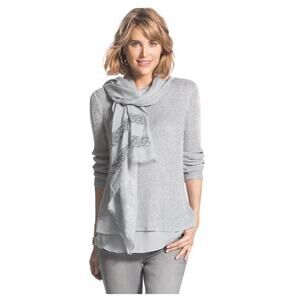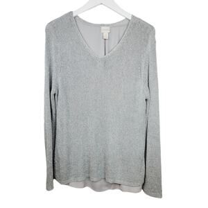 CHICO'S Size 2 (Large) Shine Stitch Aindri Sweater Metallic Silver Layered